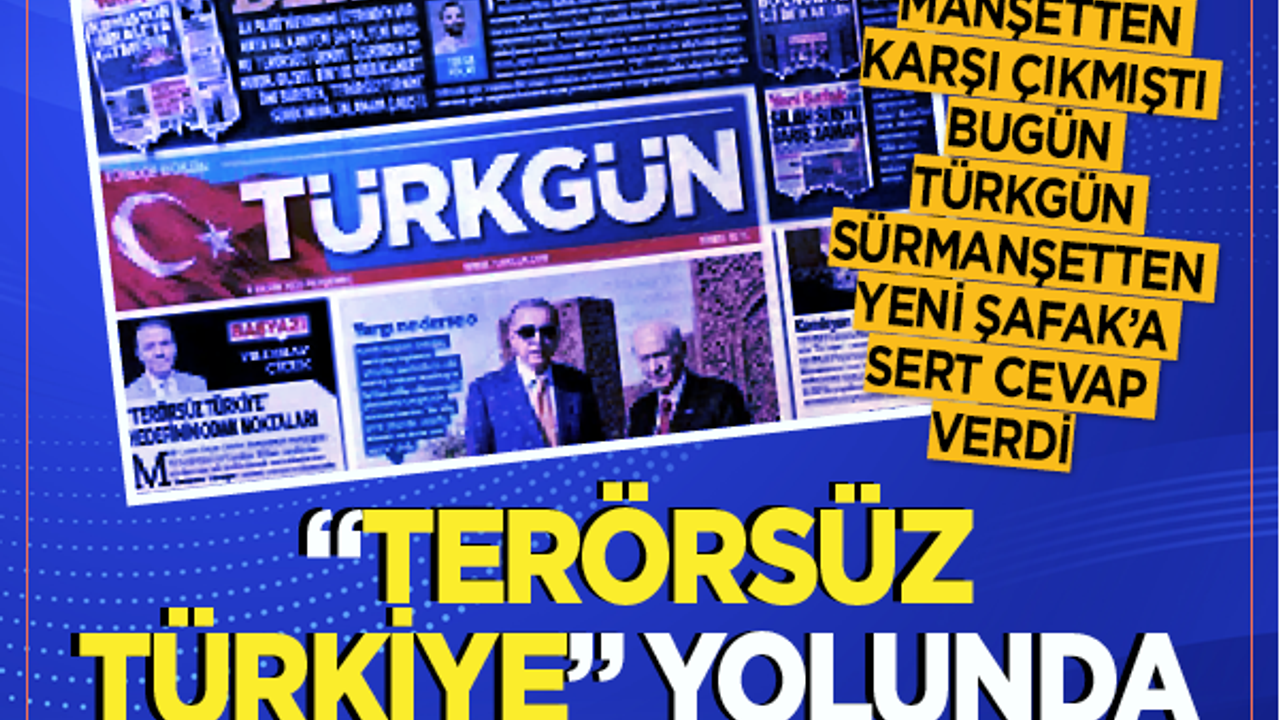 Yeni Şafak’ın manşeti MHP kanadında büyük tepkiyle karşılandı. Türkgün gazetesi bugünkü manşetinde, “Yeni Şafak ‘Terörsüz Türkiye’ye darbe vurmak istedi, arşivlerle rezil oldu! Derdiniz ne sizin?” ifadelerine yer verdi.