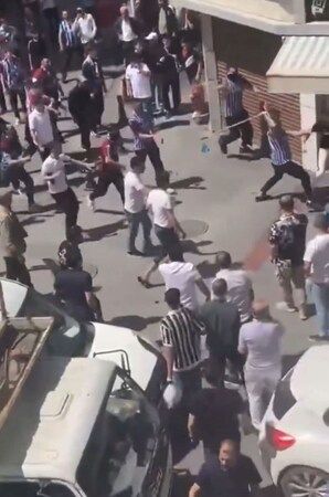 Kısa sürede büyüyen olaylar taşlı sopalı kavgaya dönüştü. Birbirlerine acımasızca vuran taraftarları halk ayırmaya çalıştı.