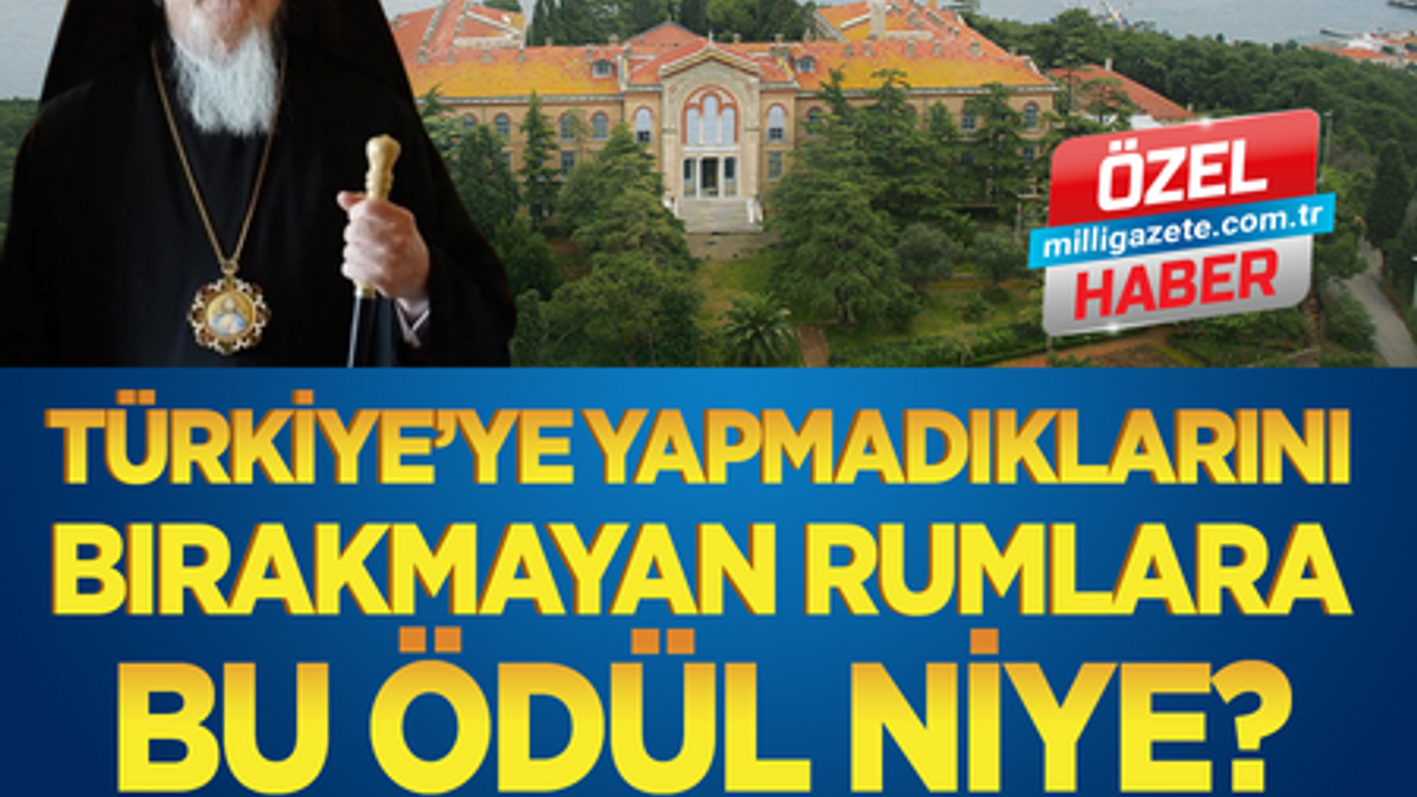 Atina’da cami yapılmasına izin vermeyen, Batı Trakya’daki Türk azınlığı yok sayan, Adalar Denizi’nde Lozan ve Paris anlaşmalarını çiğneyerek onlarca adayı işgal eden, Doğu Akdeniz’de petrol ve doğalgaz rezervlerimizi gasp eden, arkasına aldığı ABD, AB ve İsrail’ ile Türkiye’ye tehdit ve şantaj yapan, Kıbrıs’ta EOKA benzeri örgütler kurarak Türk tarafına gözdağı veren Rumlara Ankara’nın yapacağı jesti Fener Rum Patriği Bartholomeos açıkladı. Bartholomeos, Heybeliada Ruhban Okulu'nun 2026'da açılacağını söyledi.