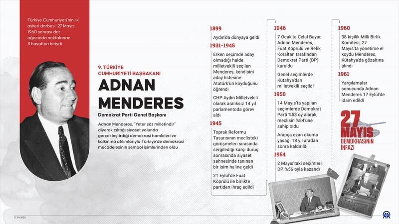 Türk demokrasisi, 16-17 Eylül 1961 tarihlerinde en kara günlerinden birini yaşadı. 1950 seçimlerinde yüzde 52,7 oyla iktidara gelen ve 10 yıl başbakanlık yapan Adnan Menderes ile arkadaşlarının idamının üzerinden 64 yıl geçti.