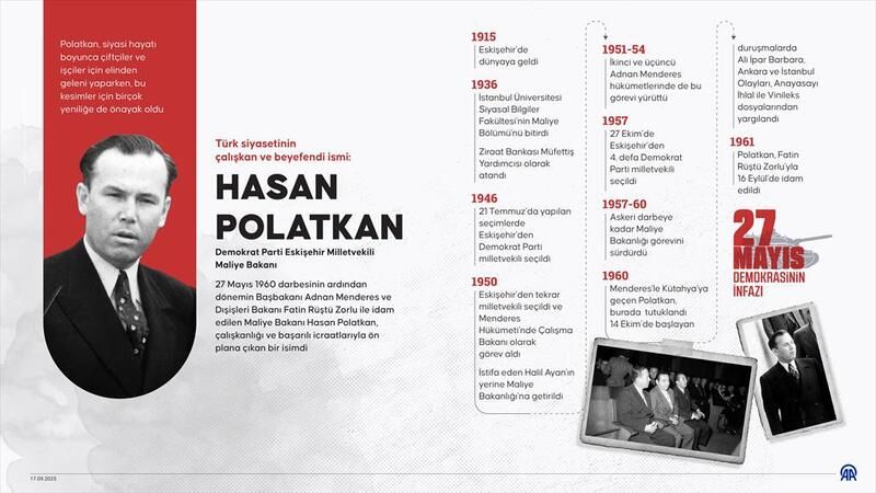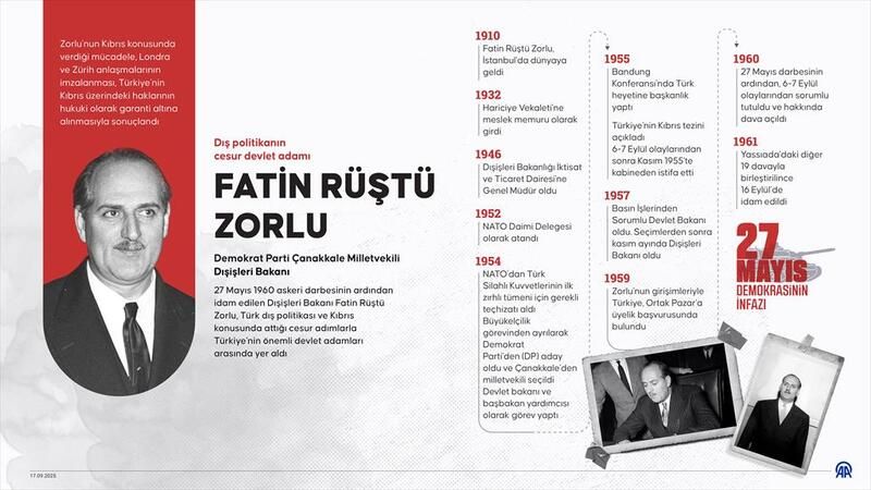 Türk demokrasi tarihinin kara lekelerinden 1960 askeri darbesi sonrası, Yassıada'daki yargılamalar sonucu idam edilen Adnan Menderes hükümetinin Dışişleri Bakanı Fatin Rüştü Zorlu ve Maliye Bakanı Hasan Polatkan'ın vefatının üzerinden 64 yıl geçti.
