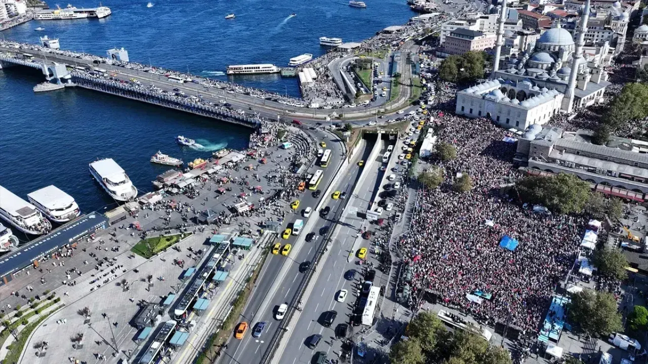 Katılımcılar, "Katil İsrail Filistin'den defol", "Gazze'ye selam direnişe devam", "Nehirden denize özgür Filistin", "Müslüman uyuma kardeşine sahip çık" şeklinde slogan attı. "Ben Gazze'deki çocuklar için yürüyorum sen ne yapıyorsun?", "Yürü kardeşim ayağına Kudüs gücü gelsin", "Bir sabah gelecek kardan aydınlık", "Zulmün olduğu yerde tarafsız kalınmaz" yazılı döviz ve pankartlar taşıyan grubun yürüyüşü devam ediyor. Etkinlik kapsamında Eminönü Meydanı'nda konuşmaların yapılması bekleniyor.