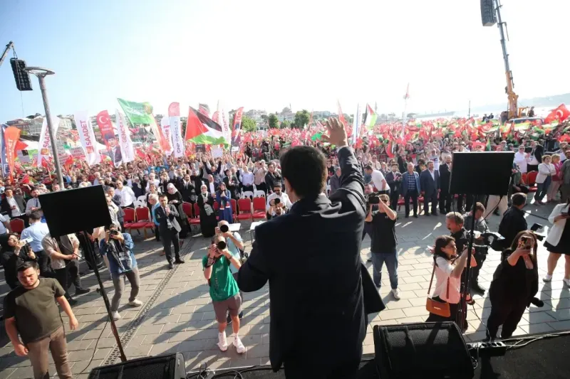 Üsküdar Meydanı’nda yapılan mitingde, katılımcılar duygusal anlar yaşarken, Gazze’ye olan desteğin her geçen gün daha da büyüdüğü ifade ediliyor.