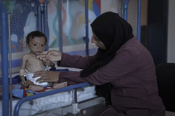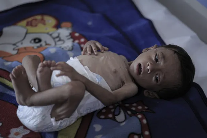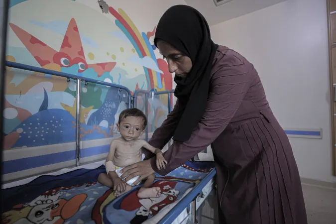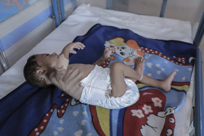 Açlık ve yetersiz beslenme ile mücadele eden binlerce çocuktan biri olan 7 aylık Hasan Ahmed Felfel, Gazze'deki Abdulaziz er-Rantisi Çocuk Hastanesi’nde kısıtlı imkânlarla tedavi görüyor. Yetersiz beslenme nedeniyle sağlık durumu her geçen gün kötüleşen Felfel, ölüm riskiyle karşı karşıya.