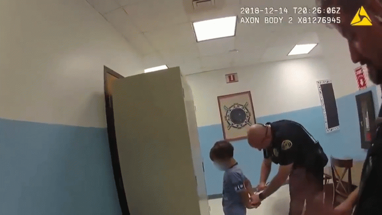 ABD'nin Florida eyaletinde 2018 yılına ait okulda bir öğretmenin göğsüne yumruk atan 8 yaşındaki engelli çocuk, polis tarafından ellerine kelepçe takılarak gözaltına alındığı görüntüler ortaya çıktı