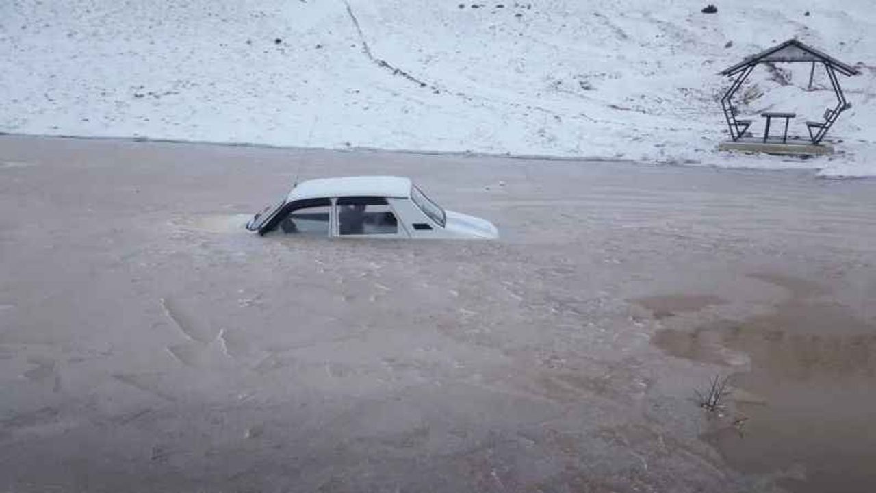 Adana'nın Tufanbeyli ilçesinde, hava sıcaklığı eksi 18 dereceye kadar düştü. Buzlanmadan dolayı kayıp yol kenarındaki su birikintisine düşen otomobil buz tuttuğu için çıkartılamadı.