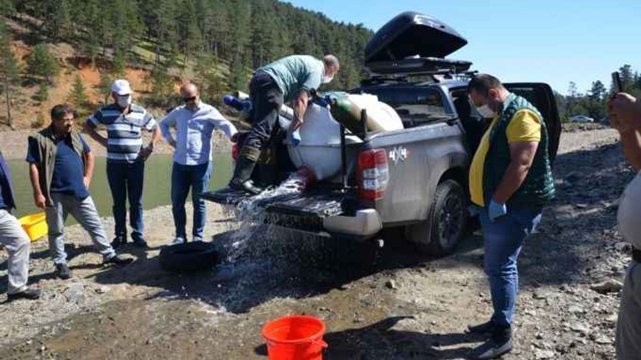 Çorum Milli Parklar İl Müdürlüğü tarafından Kargı Aksu Göleti’ne 16 bin alabalık yavrusu salındı.