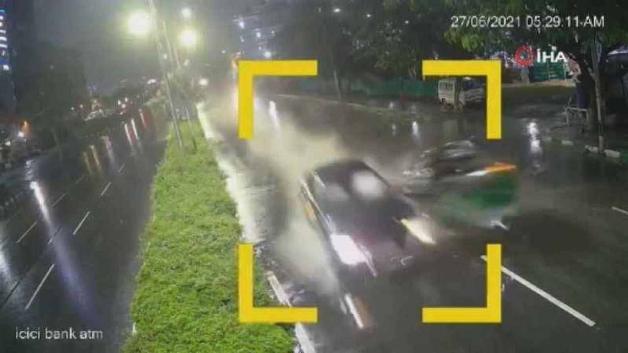 Hindistan'da alkollü bir sürücü dehşet saçtı. Güvenlik kamerasına saniye saniye yansıyan olayda, Inorbit Alışveriş Merkezi yakınlarında yağmurlu havada aşırı hızla ilerleyen otomobil, motor taksi olarak bilinen bir Tuk-Tuk’a arkadan çarptı. Çarpmanın etkisiyle Tuk-Tuk’un metrelerce savrulduğu görülürken, içindeki yolcu hayatını kaybetti, sürücü ise yaralandı. Trafikte dehşet saçan otomobil sürücüsü ise olay yerinden kaçarak kayıplara karıştı. 27 Haziran’da yaşanan olayın ardından Cyberabad Polisi tarafından yapılan açıklamada, "Alkollü sürücü Inorbit Mall yakınlarında bir yolcuyu öldürdü" denilerek sürücü hakkında dava açıldığını duyuruldu.