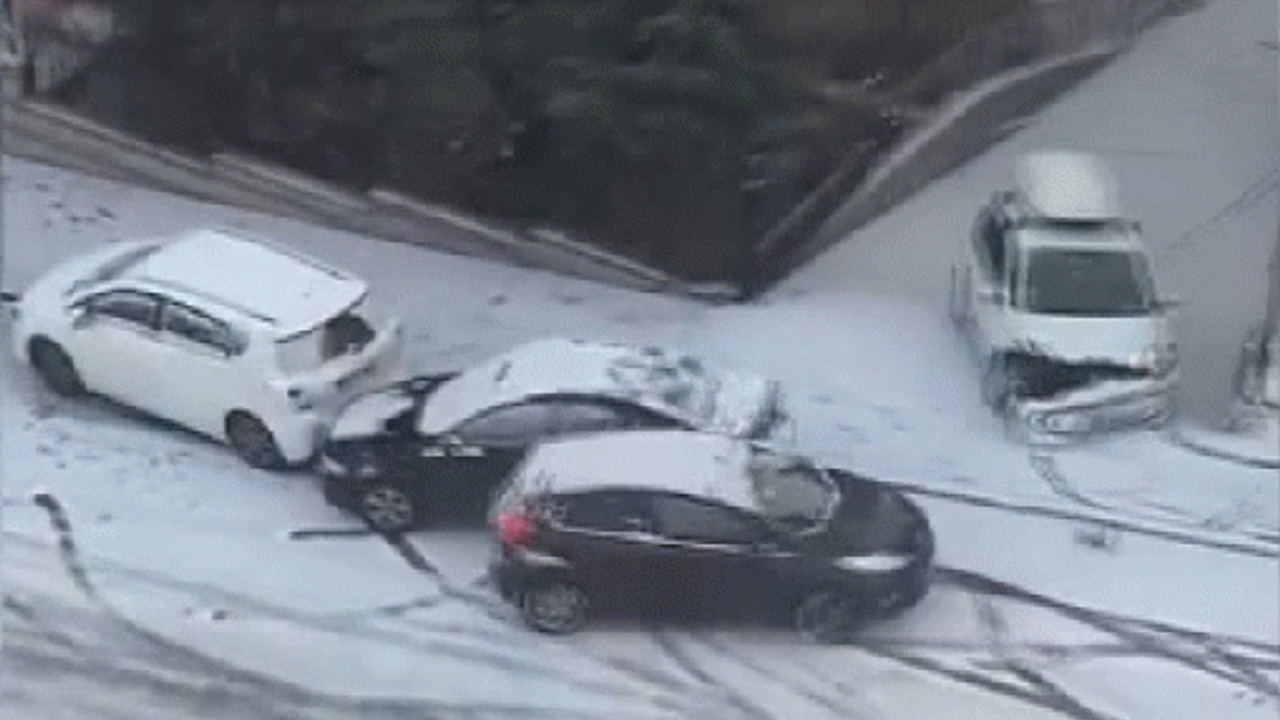 Ankara Hilal Mahallesi Hollanda Caddesi'nde buzlanma nedeniyle araçların kayarak park halindeki otomobillere ve birbirlerine çarpma anı amatör kameraya yansıdı.