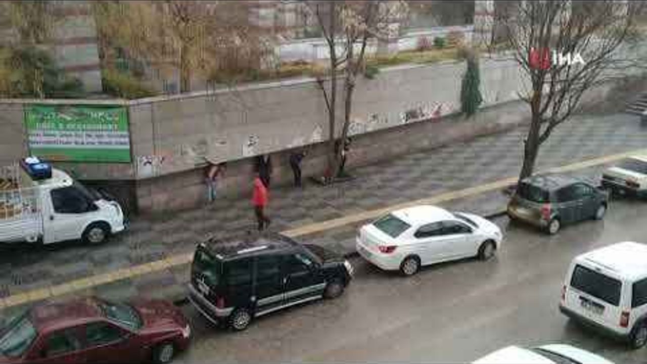 Ankara’da aniden bastıran yağmur daha sonra doluya dönüştü. Bir anda bastıran dolu tanelerinden kaçmak isteyen vatandaşların bina saçakları altına sığınmaya çalıştığı anlar ise cep telefonu kameralarına yansıdı.