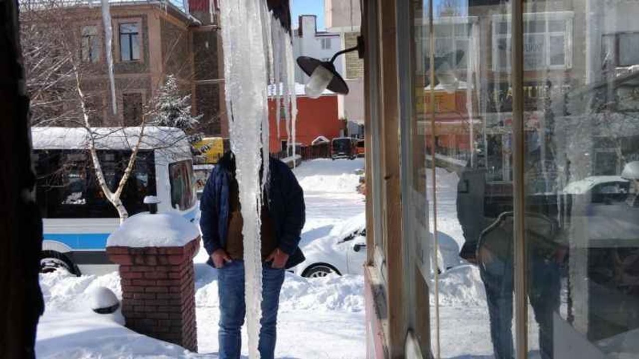 Yoğun kar yağışının ardından dondurucu soğukların etkisine giren Ardahan’da çatılardan sarkan buzlar insan boyunu geçerken tehlikeli görüntüler oluşturdu.