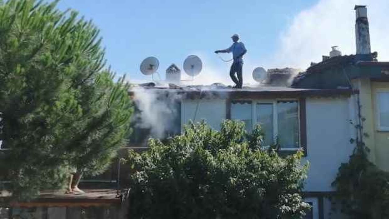Bahçe hortumu ile çatıya çıkıp yangını söndürmeye çalıştı