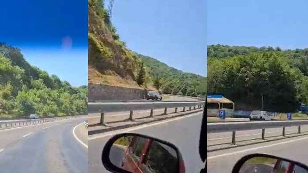 Bartın Amasra karayolunun Ahatlar mevkiinde bir otomobil ters şeritte ilerledikten sonra benzin istasyonuna giren aracın ters şeritte seyrettiği anlar cep telefonu kamerası ile saniye saniye kaydedildi.