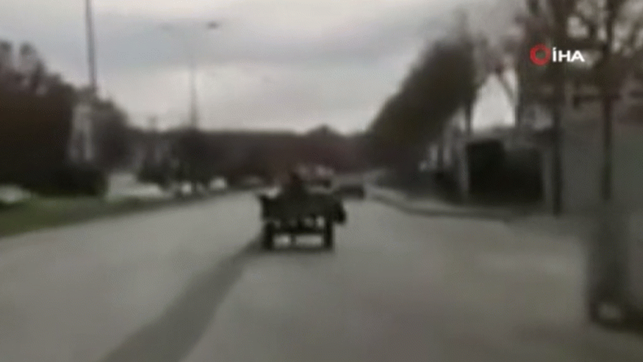 Küçükçekmece Aymakoop sanayi sitesi mevki'inde sabah saatlerinde yaşanan ve vatandaşların cep telefonu kamerasına yansıyan görüntülerde karayolunda arkasında arabası ile bir atın hızla yol aldığı görüldü.