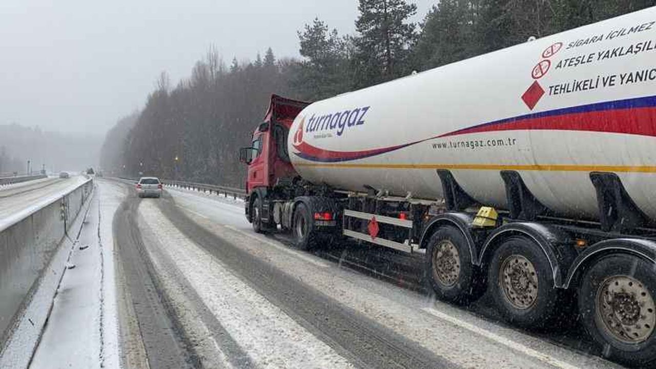 Türkiye’nin en önemli geçiş güzergahlarından Bolu Dağı’nda sabah saatlerinde başlayan kar yağışı sebebiyle bazı araçlar yolda kaldı. Dağı tırmanamayan bir tır sürücüsü zor anlar yaşarken tır sürücüsünün yardımına trafik polisleri...