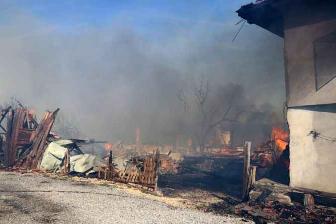 Köyde bulunan büyükbaş hayvanlar telef olurken bölgeye gelen itfaiye ekipleri, yangına müdahale etti. Köylüler de söndürme çalışmalarına yardımcı olurken, yangını kontrol altına almak için çalışmalar devam ediyor.