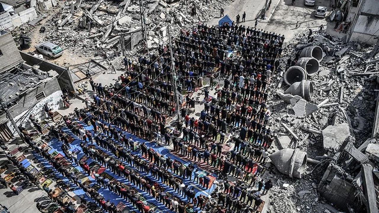 Uzun zamandır süren İşgalci saldırılarının hedefinde camiler de vardı. Gazze'de neredeyse hiçbir cami ayakta kalamadı. Bu cuma namazında da Gazzeli halk namazlarını camii enkazının içinde kıldı.