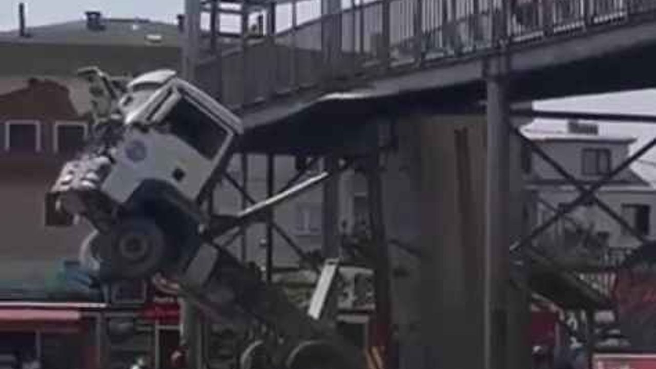 Yalova’nın Çiftlikköy ilçesinde damperi açılan kamyon üst geçide takıldı. Yaşanan kazada metal üst geçidin yıkılmaması olası faciayı önledi. Kazada şans eseri yaralanan olmadı.