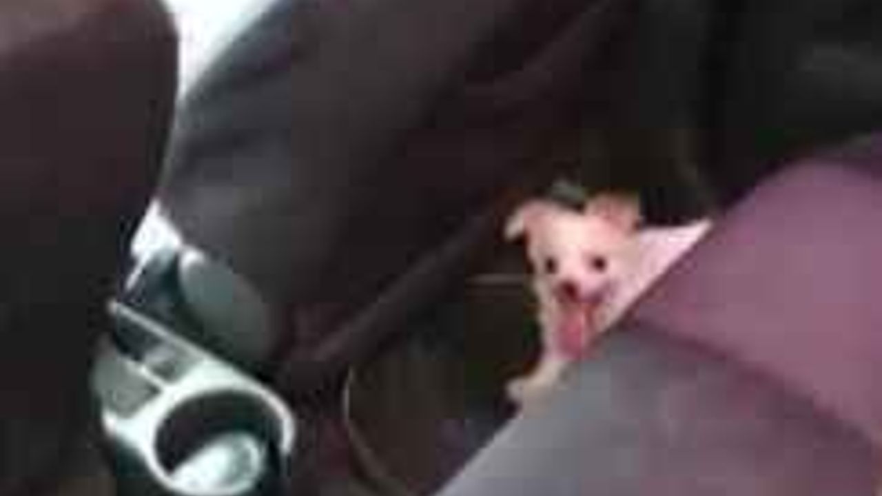 Denizli'de otomobilde mahsur kalan yavru köpeği itfaiye kurtardı