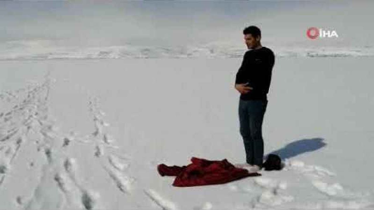 Ahlat ilçesine bağlı Dilburnu köyünde yaşayan ve geçimlerini Nazik Gölü’nden avladıkları balıklarla sağlayan köylüler, gün boyu donan göl üzerinde balık avladıkları için öğle ve ikindi namazlarını da buz üzerinde kılıyorlar....