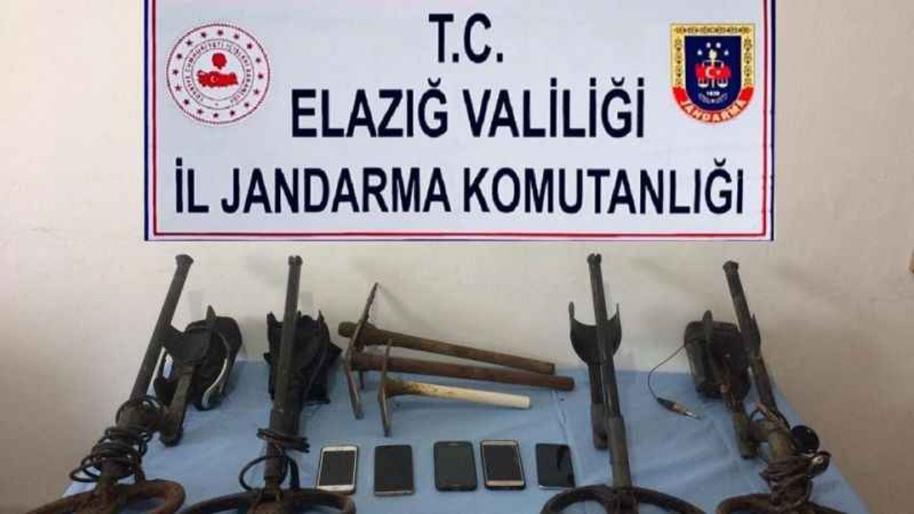 Elazığ'ın Palu ilçesinde sit alanında kaçak kazı yapan 5 şüpheli, jandarma ekipleri tarafından yakalandı. Şüphelilerden kazı malzemelerinin yanı sıra buldukları tarihi değeri olan 24 adet sikke ve 3 adet ok...