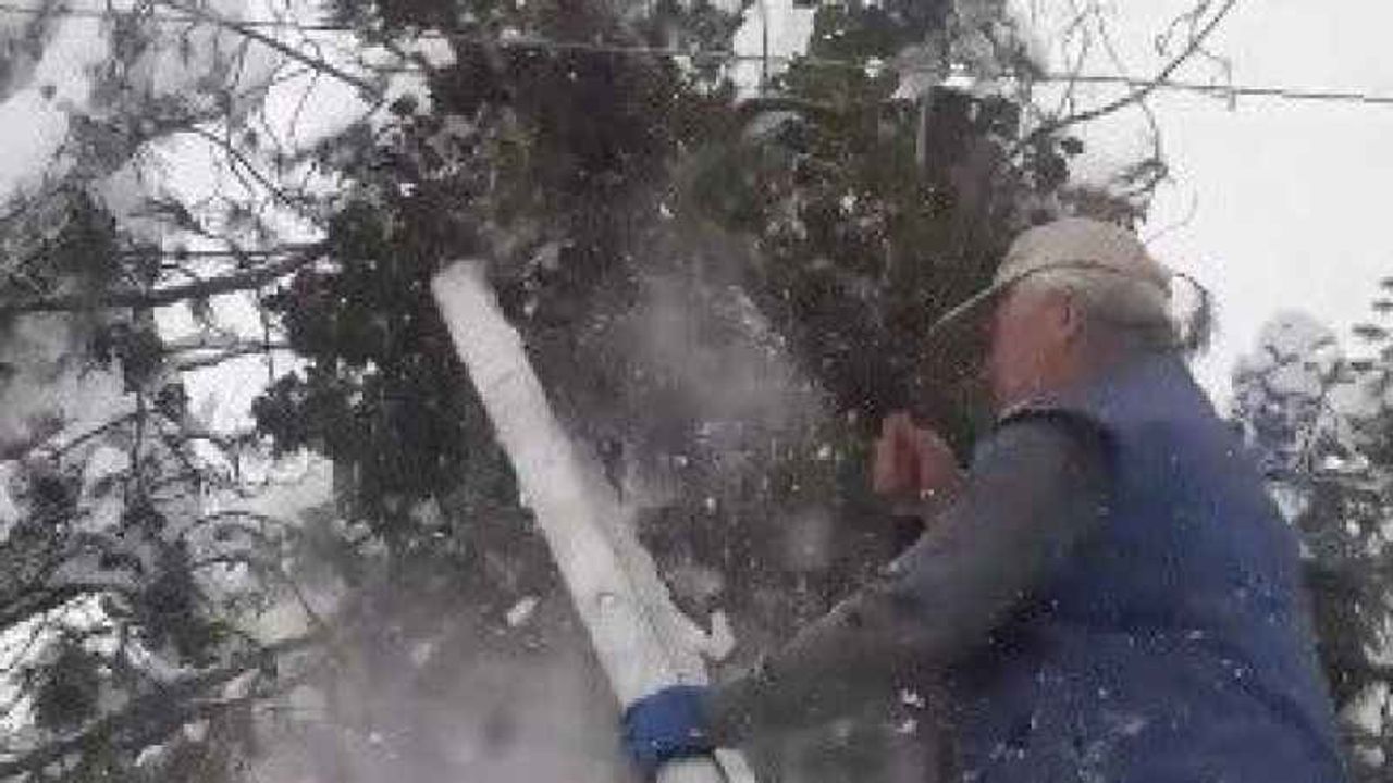 Kastamonu’da elektrik tellerinin üzerine düşen ağaç dallarını kesmek için merdivenle direğe çıkan köy muhtarı, kestiği ağacın kurtulması sonrasında merdivenle birlikte yere düştü.