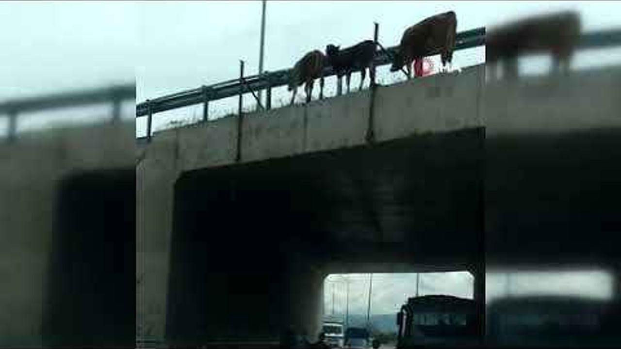 Erzincan-Erzurum çevre yolu üzerinde bulunan üst geçitten aşağıya düşen 3 büyükbaş hayvan telef oldu. İnek sürüsünü çevre yolu üzerinde ahıra götüren çobanın dikkatsizliği sonucu inekler yolun kenarındaki demir bariyerlerin...