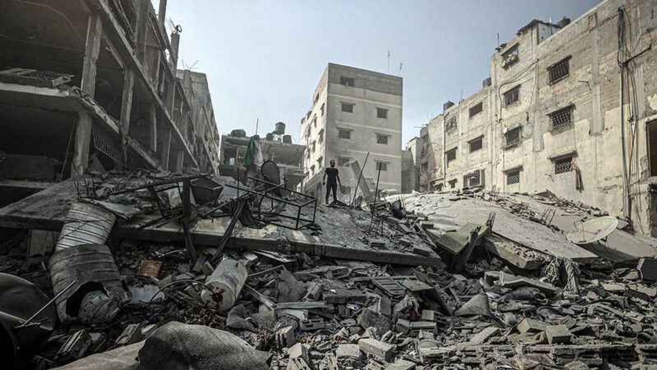 Siiyonist İsrail'in Gazze'nin Refah kentine düzenlediği saldırı sonucu bölgedeki bazı binalar yıkıldı veya ağır hasar gördü.
