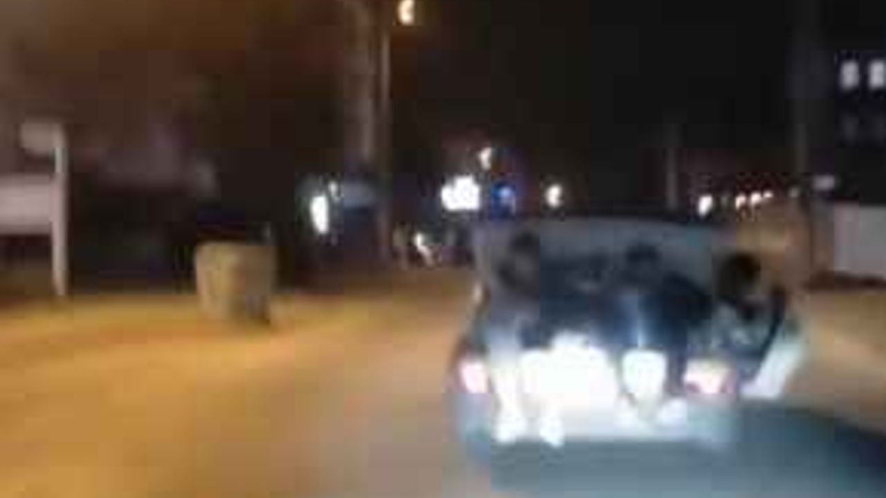 Bursa’da 2 kafadar gencin otomobil bagajındaki tehlikeli yolculuğu trafikteki başka bir sürücünün cep telefon kamerasına yansıdı.