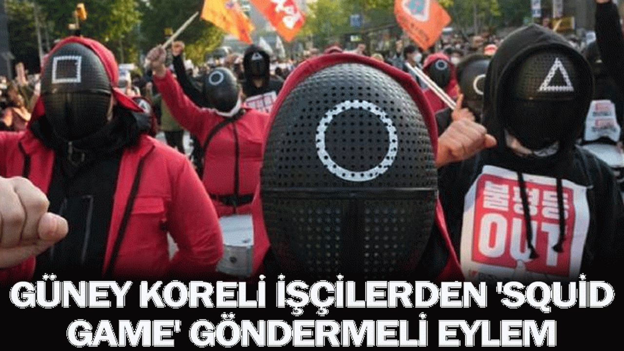 Güney Kore'de işçiler, ekonomik sıkıntıları vurgulayan ve daha iyi çalışma koşulları talep eden işçiler 'Kalamar Oyunu' ( Squid Game) temalı bir eylem düzenledi.