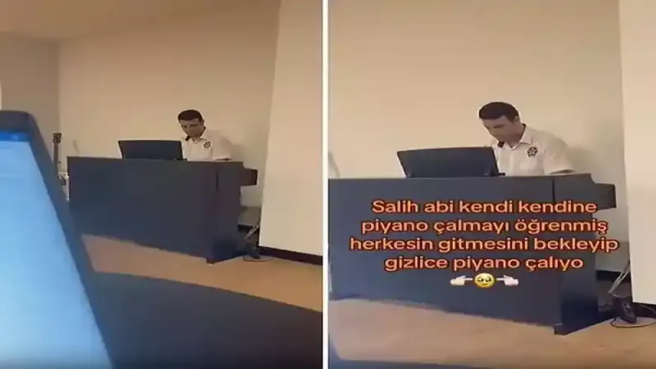 Sosyal medya kullanıcısı, yaptığı paylaşımda "Salih abi, kendi kendine piyano çalmayı öğrenmiş...