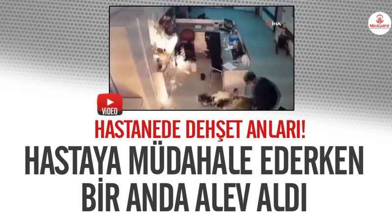 Hastanede dehşet anları! Hastaya müdahale ederken bir anda alev aldı