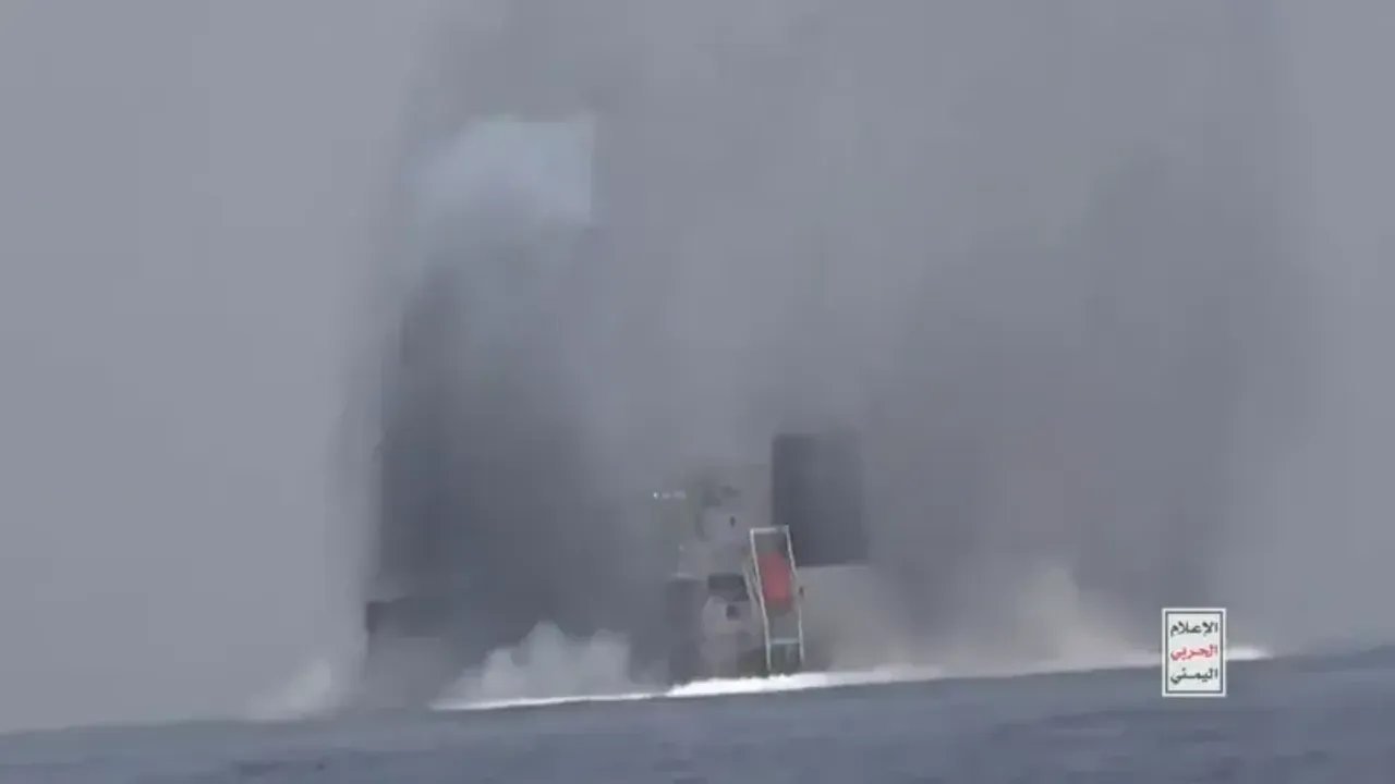 Husiler, Kızıldeniz üzerinden Siyonist İsrail'e giderken vurarak batırdıkları Tutor isimli gemiye yaptıkları saldırının görüntülerini yayınladı.