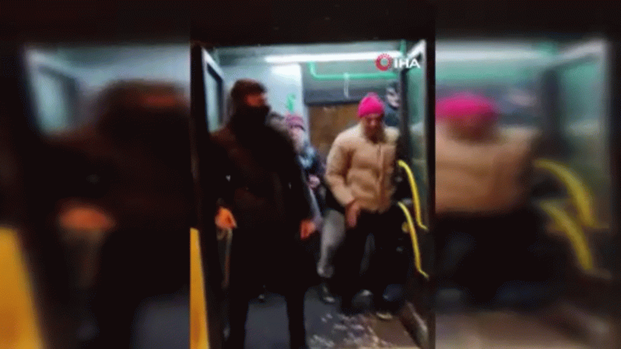 İstanbul'da etkisini sürdüren kar yağışında yolda kalan bir İETT otobüsü yolda kalınca yolcular aynı anda zıplayarak otobüsün hareket etmesi için uğraştı.