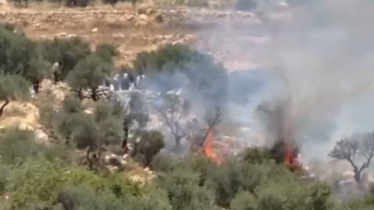 İşgalciler Batı Şeria'da yer alan Ramallah bölgesinde zeytin ağaçlarının olduğu araziyi ateşe verdi!