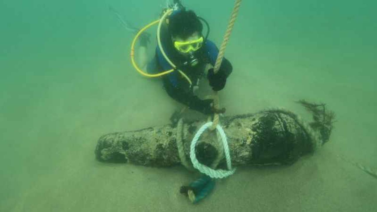 Kocaeli’nin Kandıra ilçesi Karadeniz kıyısında bulunan Seyrek Kalesi’nin açıklarında suyun altında top bulundu. Bölgeye gelen Kocaeli Müze Müdürlüğü dalış ekibi inceleme yaptı. Ekipler, 19. yüzyıldan kaldığı değerlendirilen topun çıkartılması...