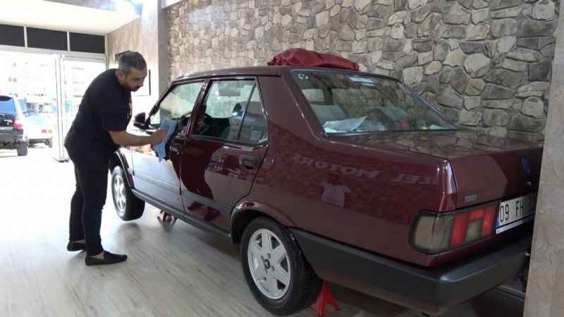 Aracı 70 bin liraya pazarlıksız satın aldığını belirten Güzel, "Kilometresi düşük olduğu için ve arabanın kendisi temiz olduğu için. Hem kilometresi düşük hem de temiz zor denk geliyor. Bu aracı fabrikadan çıktığı gibi olduğu için aldık. İnternette 70 bin lira yazıyordu. 70 bin liraya pazarlıksız aldık. Buraya geldik muayenesi yoktu. Birkaç günü vardı. Kurtarıcı ile muayenesini yaptık. Şu anda da sehpaya kaldırdık. Bunun bezi var arada sırada tozunu alıyoruz. Arada da çalıştırıyoruz sıkıntı olmasın diye. Sehpada da yatırıyoruz şu an için" ifadelerini kullandı.