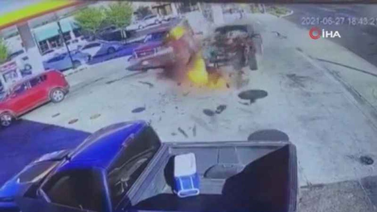 ABD’de kontrolden çıkan otomobil yakıt istasyonuna dalarak yakıt pompasına çarptı. Yakıt pompasının alev alması sonrası paniğe kapılan müşteriler olay yerinden araçlarını kaçırdı. O anlar kamerada.
