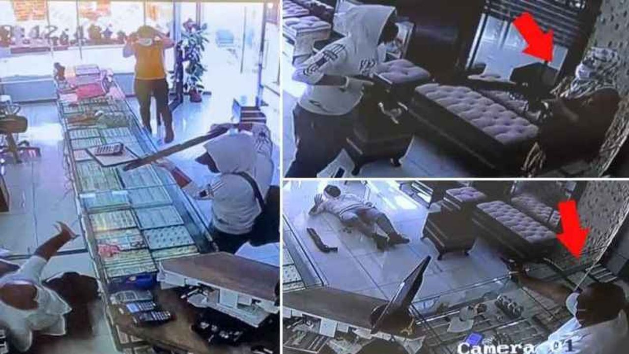 Konya'da bir kuyumcu soygunu girişimi iş yeri sahibi ve eşi sayesinde engellendi. Kuyumcu Abdullah Koyuncu, eşinin tüfek doğrultarak dikkatini dağıttığı soyguncuyu vurarak etkisiz hale getirdi.