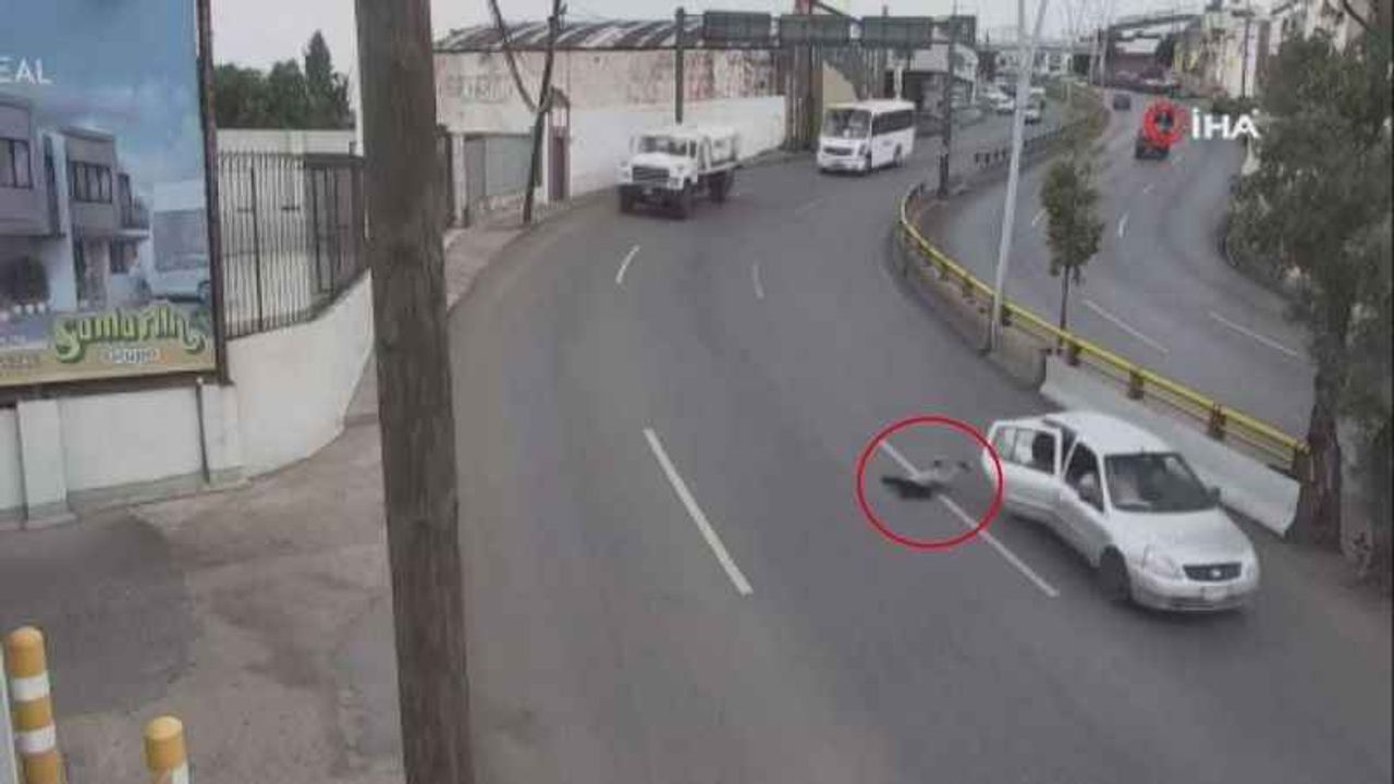 Meksika’da ailesi ile seyir halindeki araçta bulunan küçük çocuk arka kapının açılmasıyla araçtan aşağı düştü. Şans eseri yara almadan kurtulan çocuğun o anları kameralara yansıdı.