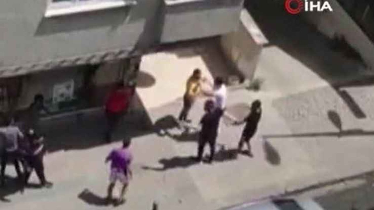Küçükçekmece'de husumetli iki yabancı uyruklu grup birbirine girdi. Tekme ve yumrukların havada uçuştuğu kavga anı bir vatandaşın cep telefonu kamerasına yansıdı.