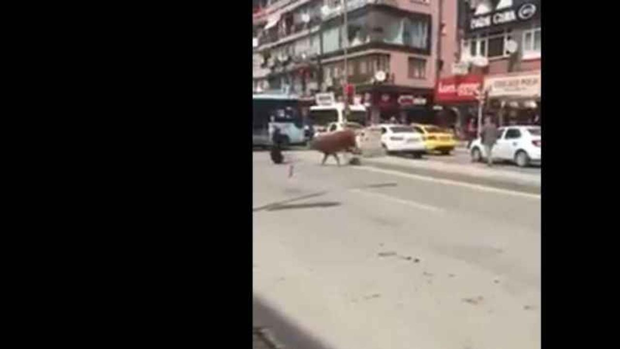 Uzun süre sahipleri tarafından kovalanan boğa, karşıdan kaşıya geçmekte olan bir kadına saldırdı. Boğanın arkasından gelişini fark etmeyen kadını vatandaşlar uyarması yeterli olmadı.