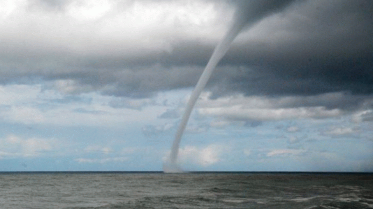 Hortumu gören balıkçılar o anları cep telefonu kamerasıyla kayda aldı.