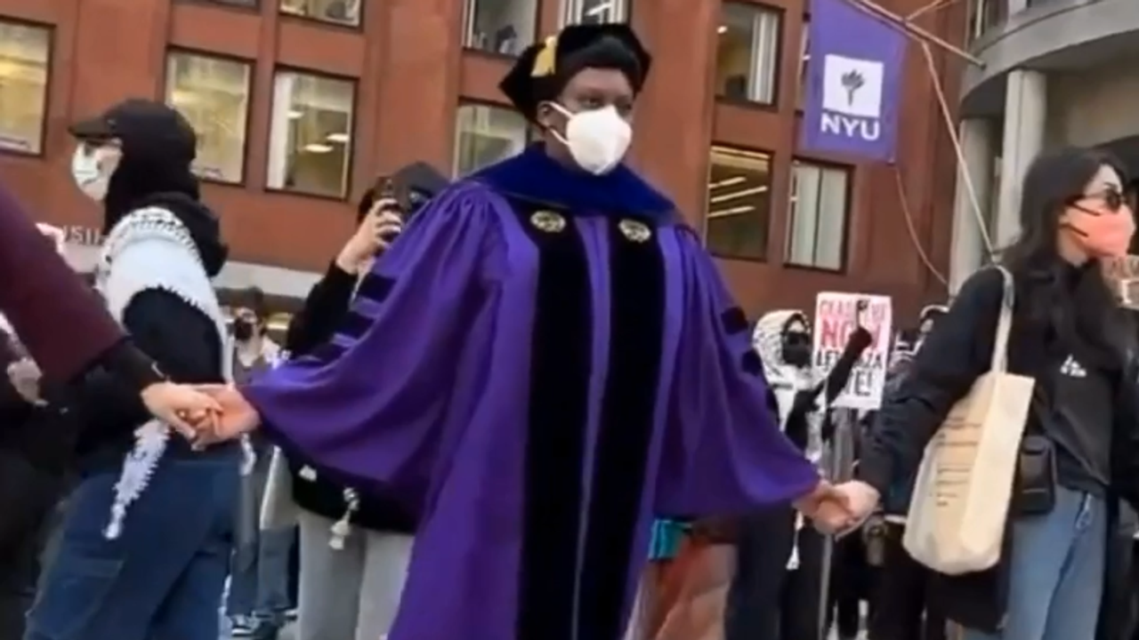 New York Üniversitesi önünde eylem yapan Filistinli öğrenciler polis müdahalesi ile karşı karşıya kalmıştı. Üniversite hocaları öğrencileri kol kola girerek oluşturdukları insan zinciri ile korudular. Öğrenciler ise insan zincirinin içinde...