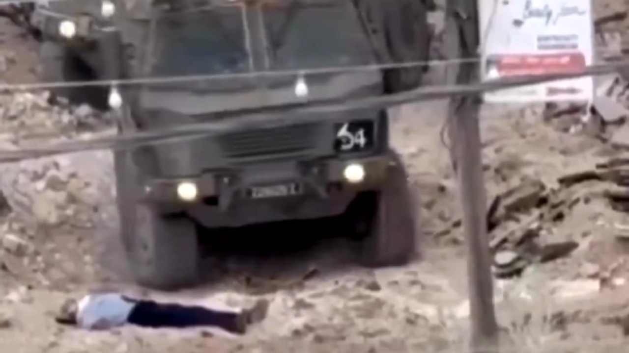 İşgalci İsrail güçleri Filistinli sivili önce şehit ettiler sonra naaşının üzerinden zırhlı araçlarla geçtiler.