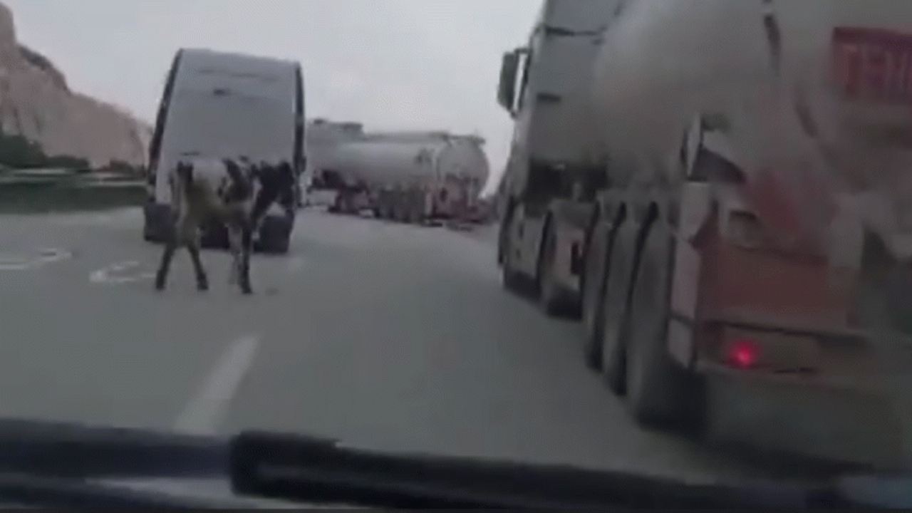 Adana- Hatay otoyolunun Erzin ilçesi mevkiinde, bir buzağı otoyola çıktı. Otomobil sürücüleri buzağıyı fark edince araçlarıyla yakalamaya çalıştılar.