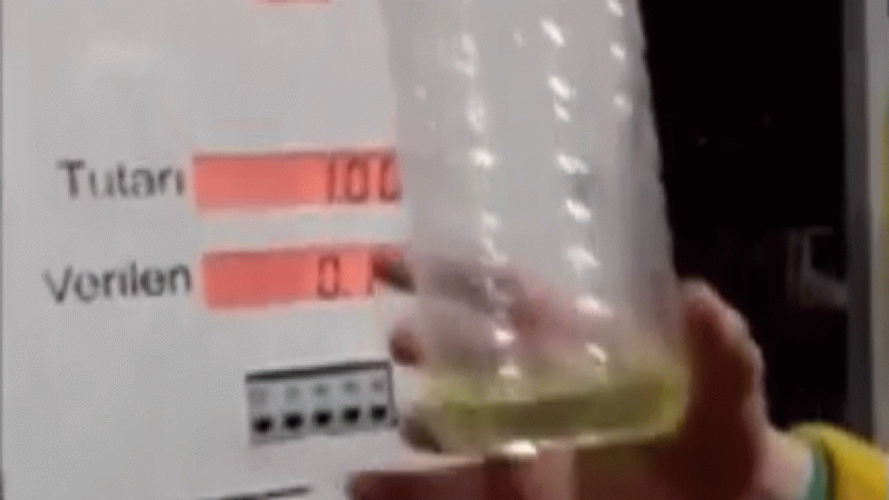 Benzin fiyatlarına gelen son zamlar sonrası bir pompacı, sosyal medya hesabı üzerinden paylaştığı videoda bir pet şişenin içine 1 TL'lik benzin doldurdu. 1 TL'lik benzine pompacı da şok oldu.