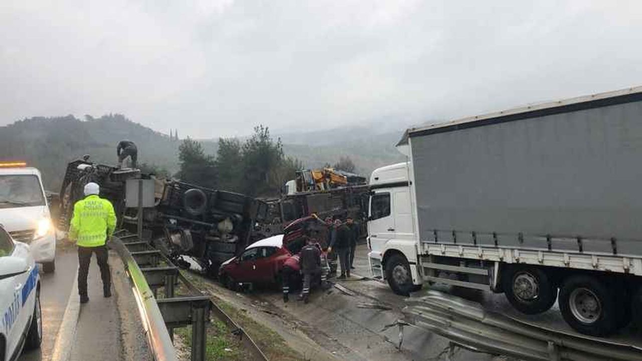 Bursa-İstanbul kara yolunun Dürdane mevkiinde Oyak Renault fabrikasından çıkan sıfır kilometre araçları taşıyan tır rampadan inerken yan yattı. Kazada tır sürücüsü kazayı hafif sıyrıklarla atlatırken, tırdan düşen sıfır kilometre araçlar...