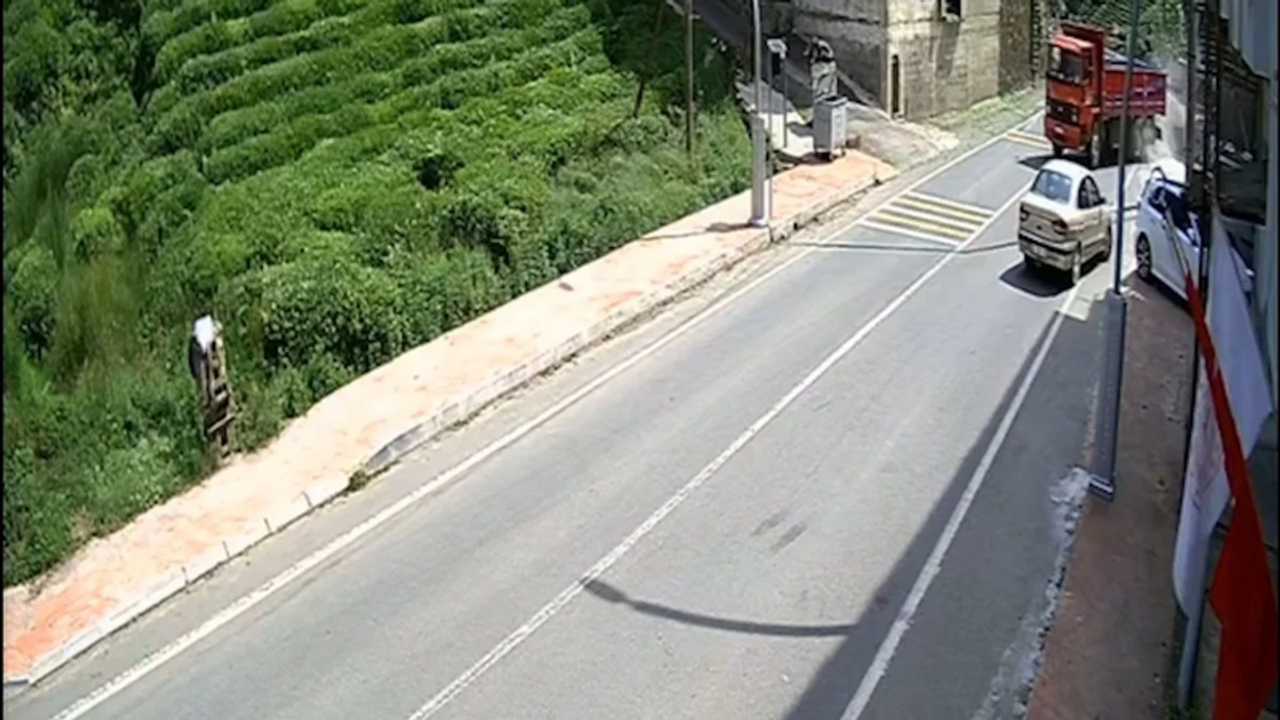 Çayeli, Madenli Beldesi Merkez Mahallesi'nde yokuş aşağı seyir halinde iken virajı alamayarak kontrolden çıkan kamyon, iki araca çarpmaktan son anda kurtuldu.