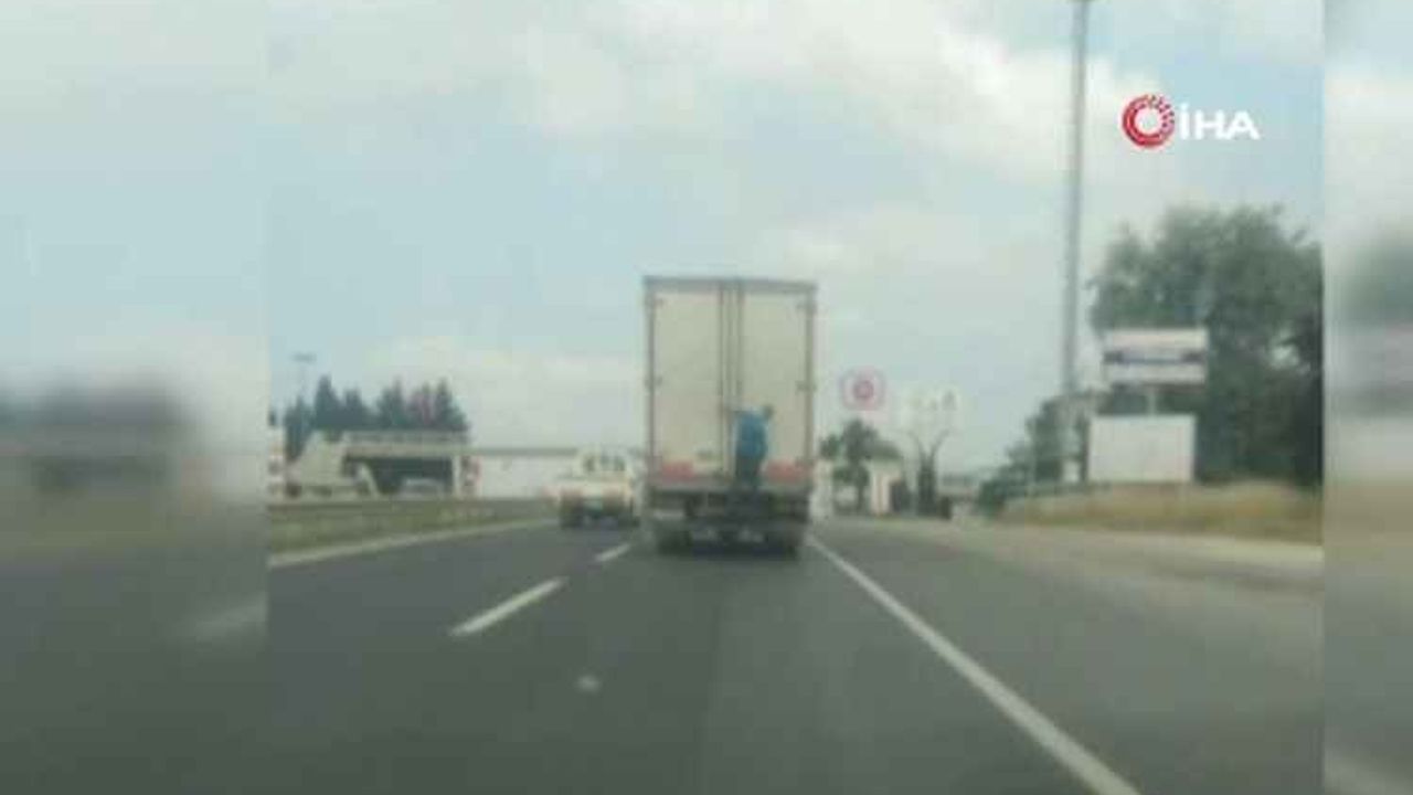 Silivri D-100 Karayolu'nda ilerleyen kapalı kasa kamyonun arkasında bulunan basamağa binerek yolculuk yapan şahıs yürekleri ağızlara getirdi. Tehlikeli bir şekilde kilometrelerce yolculuk yapan şahıs kendi canını hiçe sayarken trafikteki diğer...